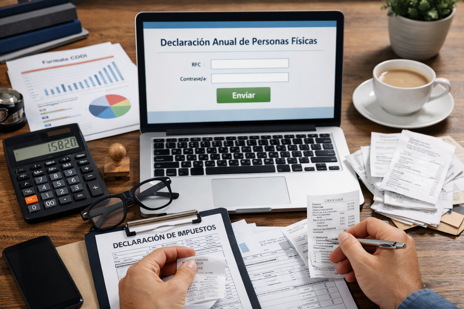 Antes de enviar tu Declaración Anual 2025, revisa RFC, Contraseña, e.firma, CLABE, CFDI, deducciones personales y visores del SAT. Guía práctica para personas físicas en abril de 2026.